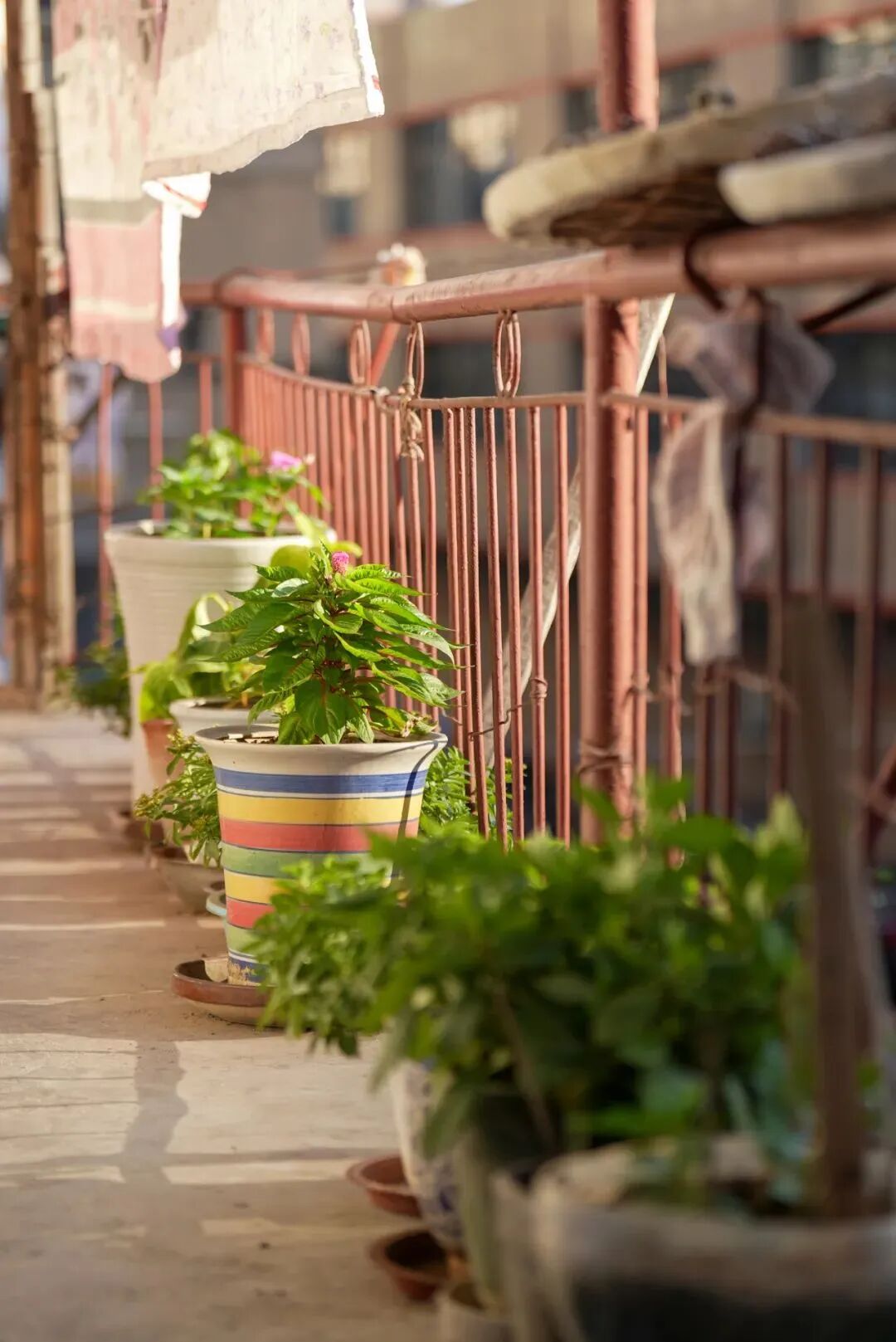 巷子里保留着上世纪的居民楼,红砖墙裸露,电线纵横。居民们在阳台上打造“小花园”,树荫下老人对弈闲聊,生活悠闲惬意。